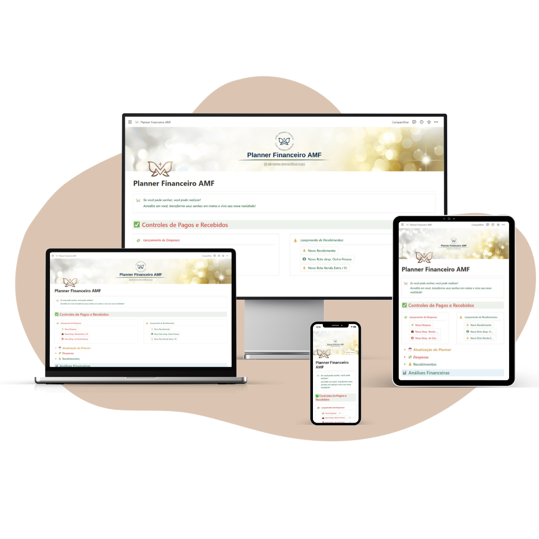 Finanças não são apenas números, são sua vida! Ao usar o Planner Financeiro AMF, você aprenderá não apenas a administrar dinheiro, mas a entender seus comportamentos, mudar sua mentalidade e planejar sua vida!